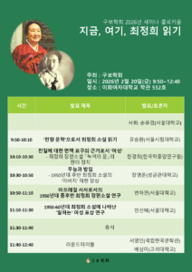 행사 정보 행사 유형: 학술대회 주최: 한국근대문학회 일시: 2026년 2월 21일 오전 9시 30분 ~ 2026년 2월 21일 오후 12시…