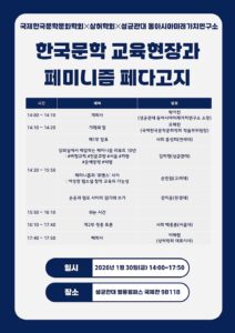 행사 정보 행사 유형: 학술대회 주최: 국제한국문학문화학회, 상허학회, 성균관대 동아시아미래가치연구소 일시: 2026년 1월 30일 오후 2시 ~ 2026년 1월 30일…