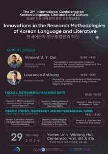 행사 정보 행사 유형: 학술대회 주최: 연세대학교 국어국문학과 BK21 교육연구단, 연세대학교 영어영문학과 BK21 교육연구단 일시: 2026년 1월 29일 오전 10시…