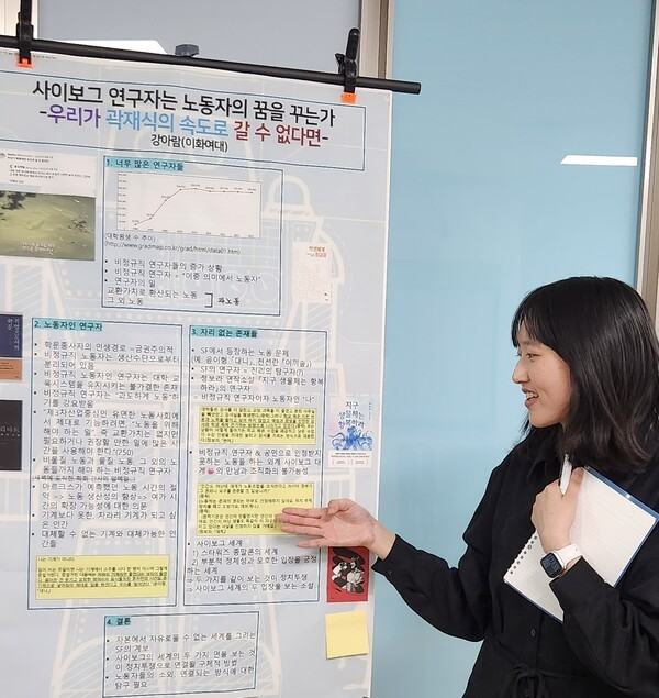 이번 대회에서는 공동 선언문뿐 아니라, 연구자 한 사람 한 사람이 남긴 ‘한 줄의 목소리’도 함께 모였습니다. 짧지만 선명한 문장들 속에는 연구자의 현실, 바람, 분노, 그리고 연대의 마음이 담겨 있었는데요! 각자의 자리에서 나온 말들이 이곳에서 하나이자 여럿의 물결처럼 이어졌습니다. 🌊 지금부터…