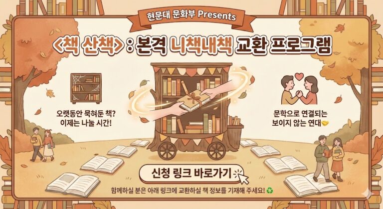 선생님, 안녕하세요? 한국현대문학자대회 문화팀입니다. 연구실 책장 한구석, 혹은 책상 위에 오랫동안 머물러 있는 책들이 있지 않으신가요? 나에게는 이미 익숙하지만, 다른 동료 연구자에게는 새로운 영감이 될 수 있는 책들에게 바깥공기를 쐬어주고자 합니다. 이번 대회에서는 연구자들 간의 따뜻한 연결을 위해 책 나눔…