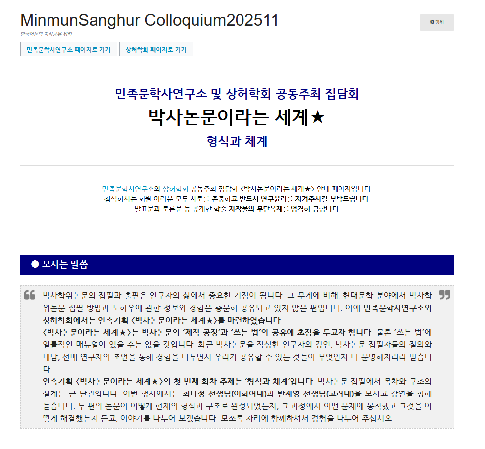 – 상세정보: https://www.klbksk.com/wiki/index.php/MinmunSanghur_Colloquium202511